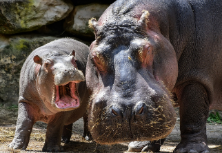하마는 물속에서 뻘을 덧칠하며 자신의 피부를 보호하고 있지만,